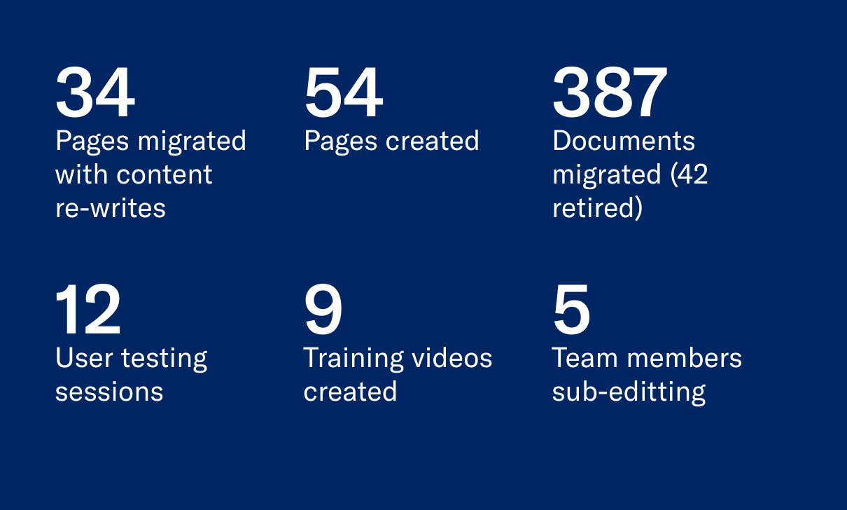 The refreshed intranet was delivered on-time and was well received. Analytics weren’t in place when my contract finished to accurately measure engagement but there was a definite perception shift.